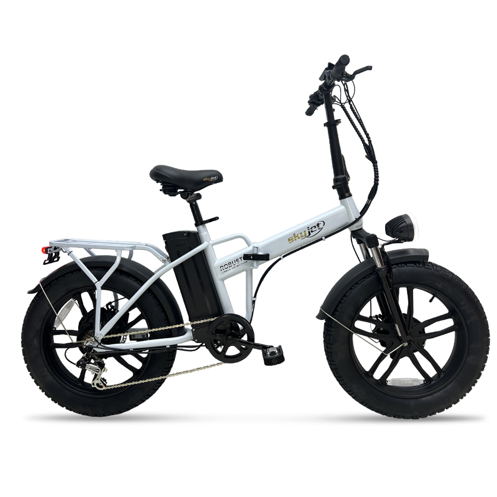 Daha fazla çekim gücüne sahip SKYJET motor… SKYJET’ın katlanabilir elektrikli bisiklet olan ROBUSTO ile tanışın. Geliştirilmiş 250 Watt motor ve 48V 13 Ah Batarya ile kullanılan ROBUSTO, kısa mesafelere gidip gelmek için mükemmel güç ve pil ömrününe sahiptir. Saatte 25 km/h hızda şarj başına 40-45 km sürüş yapın! Şok emici fat lastikleri ve disk fren sistemini kullanarak şehirin sokaklarında kolayca gezinin.